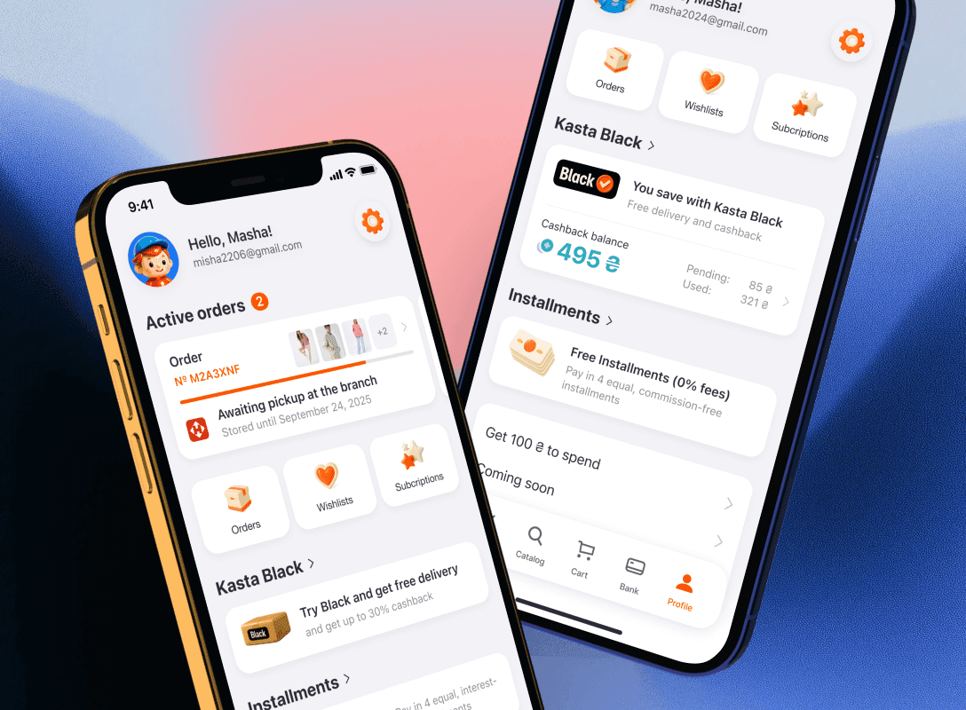 Co-created and led product design for Kasta, evolving it from a flash-sales startup into one of Ukraine’s largest multi-category e-commerce ecosystems and a SuperApp integrating marketplace, services, and mobile banking.