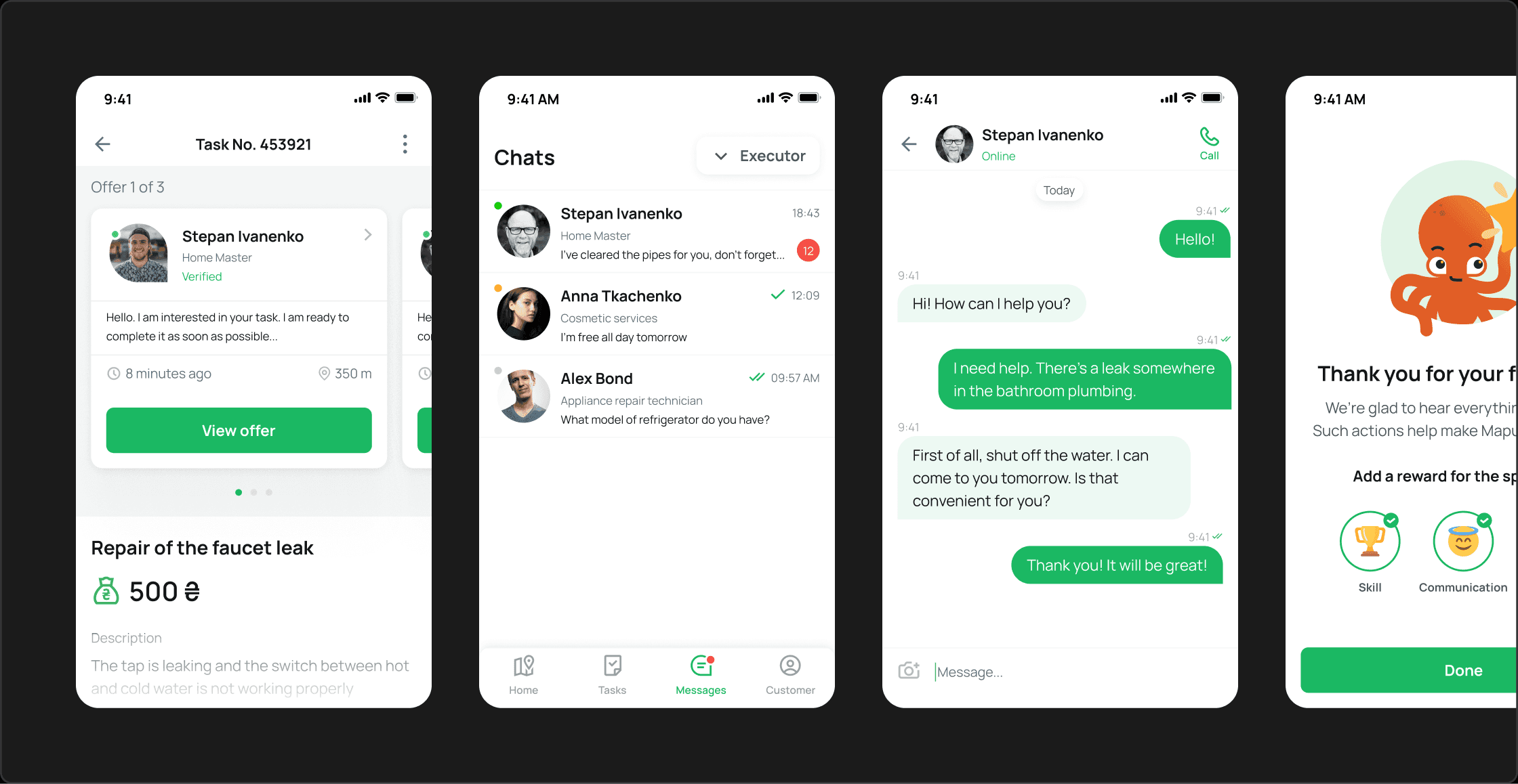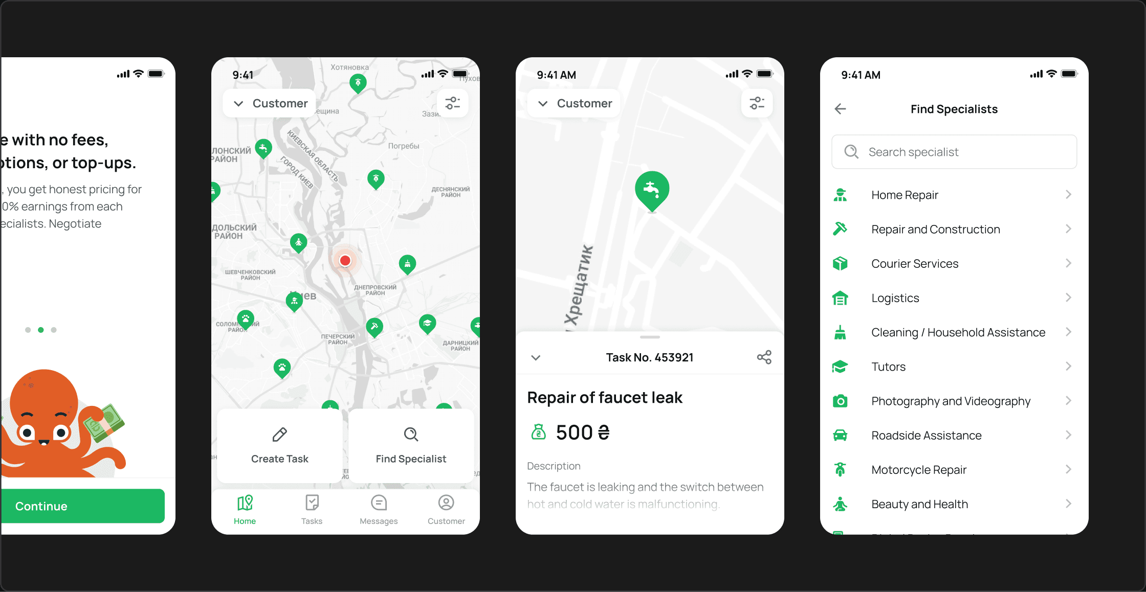 Mapus is a mobile marketplace that connects people who need help with people and small businesses who can provide services — from home repairs and cleaning to tutoring, pet care and legal support. As a Co‑founder, I led product and UX design using a human‑centered approach: we co‑created the app with real providers and clients, built a map‑first experience for finding tasks and executors nearby, and shipped a cross‑platform Flutter MVP with a simple subscription model for professionals. The project is currently on hold due to funding constraints after the full‑scale invasion of Ukraine.